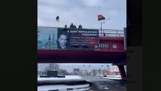 Вдень першого січня біля метро «Турбоатом» у Харкові відбулася акція до дня народження Степана Бандери.