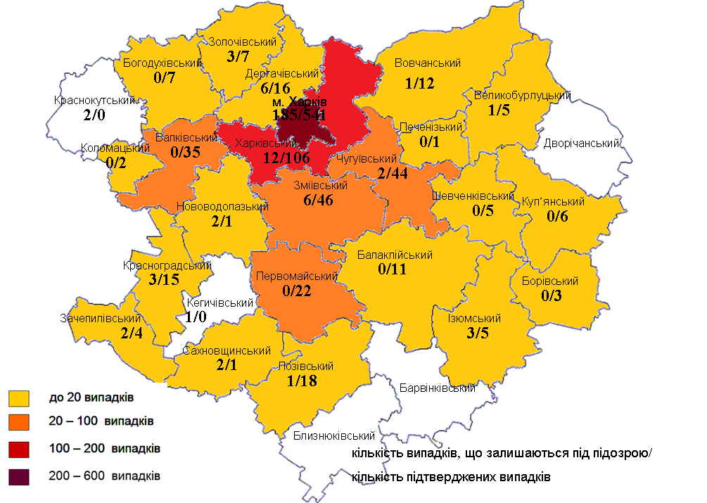 Всего в Харьковской области смертельно опасный вирус распространился на областной центр и 24 района области.
