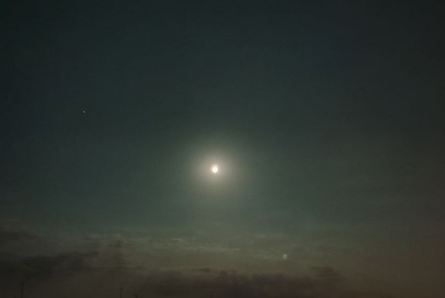 У ніч на 29 серпня було хмарно, тож Місяць виглядав як перлина серед мушлі.