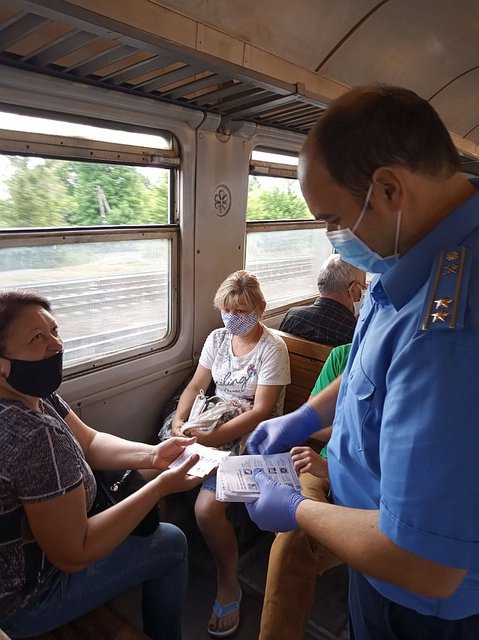 По ее словам, участники рейда разъясняют пассажирам об опасности коронавируса, проводят беседы о профилактике коронавирусной инфекции, раздают листовки с рекомендациями врачей.
