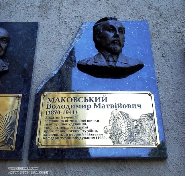 Біля входу до будівлі Кафедри турбінобудування НТУ “ХПІ” на фасаді висить пам’ятна дошка Маковському В.М.