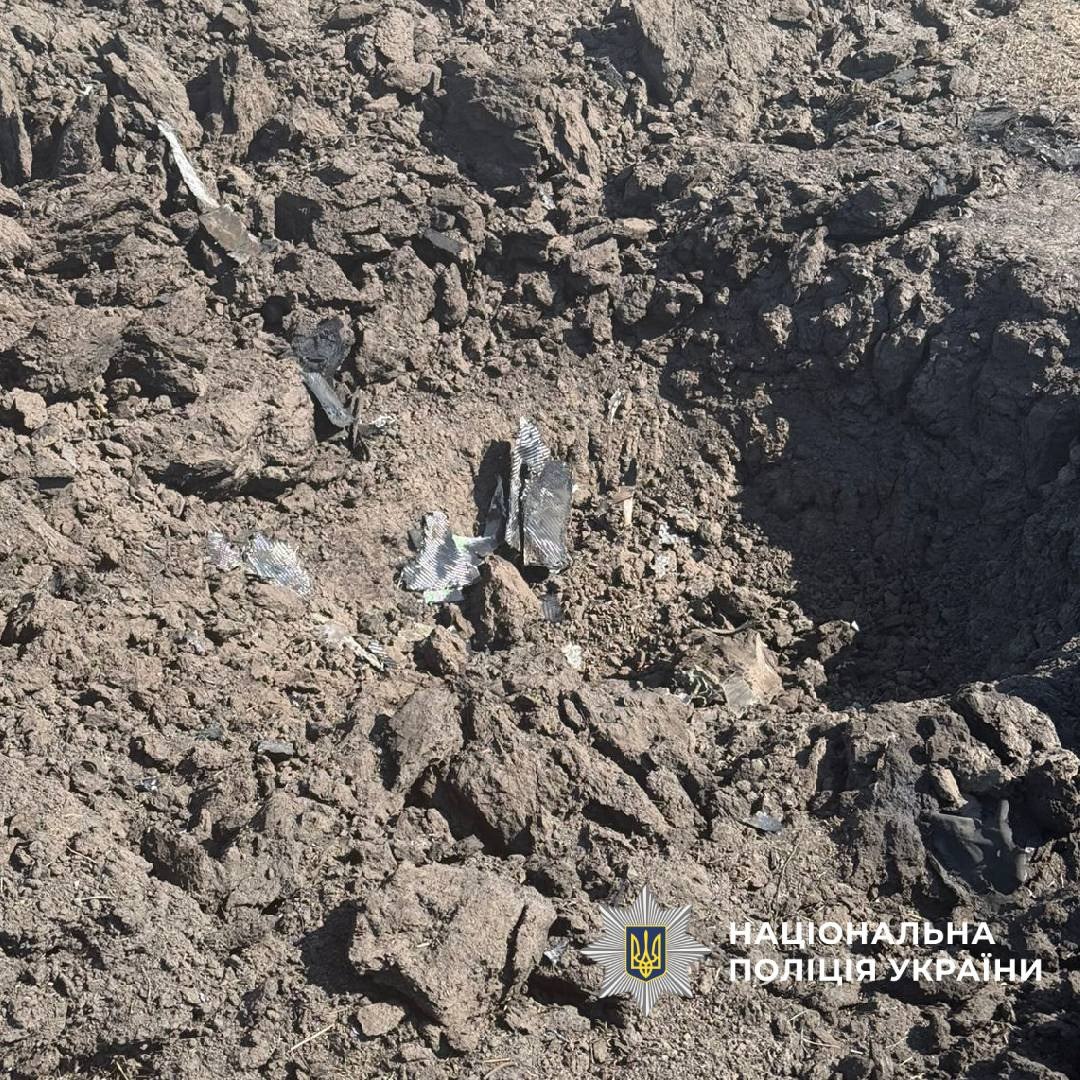 Другий боєприпас вдарив у полі неподалік цього села. Вибуховою хвилею пошкоджено багатоквартирні будинки.