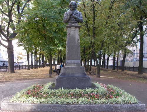 Памятник был установлен летом 1904-го. Лишь немногим позднее памятника Пушкину. Но из-за революционных событий 1905-1907 годов статуя три года простояла в деревянном ящике.