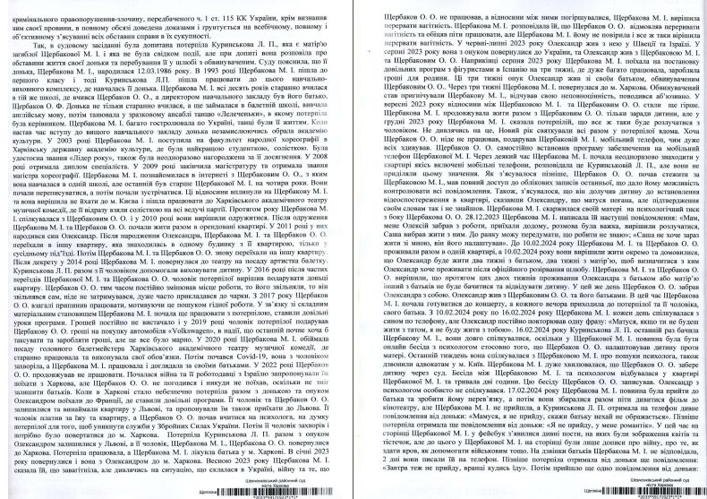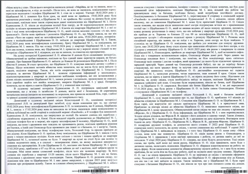 І поряд з цим, нещодавно оголошений вирок у справі жорстокого вбивці Олексія Щербакова, який психологічно катував дружину, вбив, розчленував, приховав сліди і мріяв виїхати з країни, аби не йти до лав ЗСУ, дивує багатьох не лише в Харкові, а й за його межами, за межами України. Бо яскраву зірку ХАТМК любили не лише в рідному місті, але навіть за межами країни… На останнє засідання суду зібралися близьки і колеги Марії Холодної. Подію першого дня прийшли зняти відомі тв-канали Харкова і України, але з-за перенесення засідання наступного дня не усі мали змогу знову бути в залі суду.