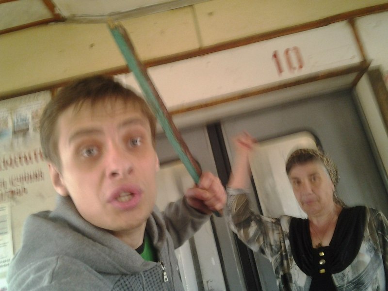 На днях странную семейку заметили в одной из пригородных электричек. Юный извращенец с палкой в руках запечатлен в вагоне. Там же присутствовала и его мать.