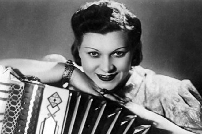 Композиция выполнена в виде мизансцены, в которой Дунаевский играет на рояле, а Шульженко, облаченная в синий платочек, поет.