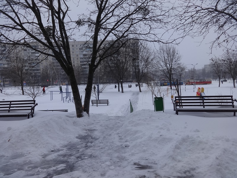 «Я живу возле регионального центра админуслуг на Салтовке, – поделилась с «ГХ» Наталья, – думала, может, будут чистить. Да куда там – трактор приехал, почистил вход для сотрудников и дорожку у поликлиники, а дорогу вокруг центра и его же парковку не стали чистить. Только дворник спешил до прихода людей перед входом лопатой подчистить».