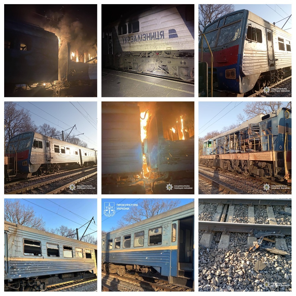 Зокрема, вже 14 березня близько 05.40 у селі Водяне Богодухівського району ворожий БпЛА, попередньо «Герань-2», влучив поблизу приміського електропоїзда «Огульці – Полтава». Пасажири не постраждали. Внаслідок вибуху пошкоджено обшивку електропотяга, кабіну та скління вагонів. Травм зазнали троє машиністів віком 52, 57 та 27 років, а також 19-річний помічник машиніста.