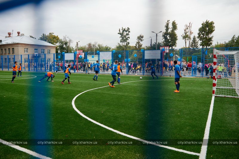 В Харьковской школе №171 открыли отреконструированный стадион. Он обновлен с учетом надлежащих требований: есть поля для игр в футбол, баскетбол и волейбол, тренажеры, беговая дорожка и др.