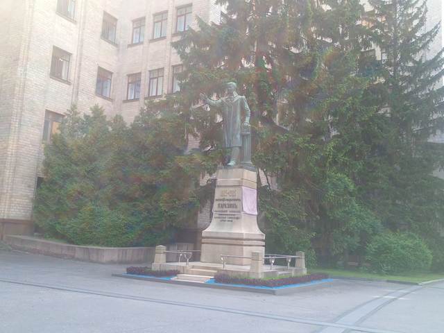 Пам’ятник встановили за рік, 2007-го, біля входу до університету будівництва та архітектури (який дивом вцилів після атаи рашистів у 2023 році).