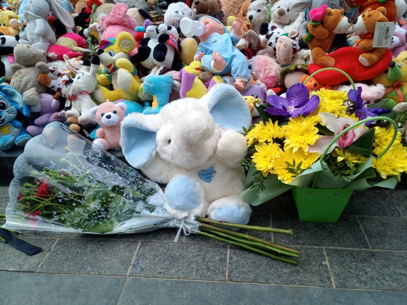 Сьогодні біля ніг маленьких янголів — свічки і іграшки, а ще слова: “Їх вбила росія”! Кожного дня люди зупиняються біля підніжжя пам’ятника і з сумом завмирають…