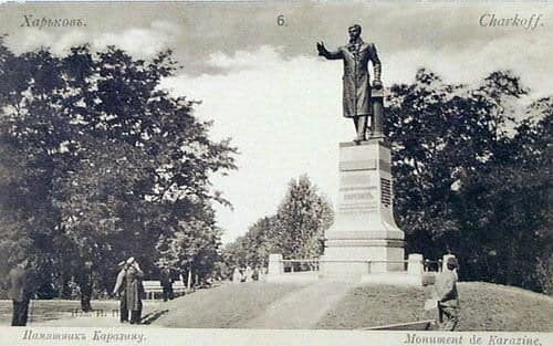 Спочатку, 1905 року, бронзового Каразіна встановили на вулиці Сумській – у тому самому місці, де сьогодні розміщується пам’ятник Тарасу Шевченку.