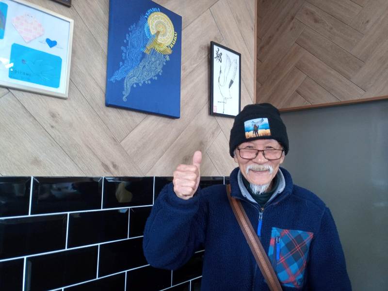 “О, Фейсбук! GX! “ARIGATÔ!” (“Дякую!”), – посміхнувся і потиснув руку журналістці пан Цучико. А ще підняв палець угору в знак віри в перемогу України!”