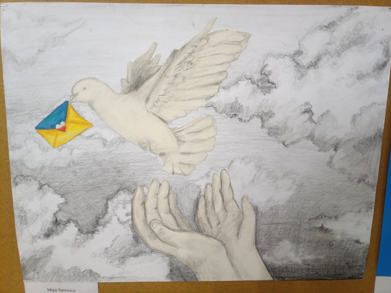 Погляд наших дітей, які стали дорослими в одну мить. Викладач дівчини О.Ф. Звольська з дитячої художньої школи №1 ім. І. Ю. Рєпіна як і інші педагоги можуть пишатися талановитими дітьми. Кожна зі 100 робіт Міжнародного українсько-польського художнього проєкту “Спільний обрій” викликає бурю емоцій – від безмірного щастя та мрії до нестерпного болю та відчаю, від горя до надії.