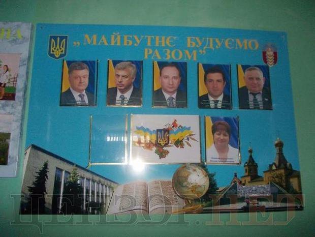 Напомним, около месяца назад разгорелся скандал из-за того, что в нескольких сельских школах на стендах «Государственных символов» наряду с гимном, флагом и гербом появились фотографии Президента Петра Порошенко и главы местной ОГА Игоря Райнина. Тогда же Директор Департамента науки и образования ХОГА Анатолий Бабичев заявил, что не знает, откуда появились портреты. Подобных указаний его департамент якобы не давал, но, по словам Бабичева, такие распоряжения могли отдавать слишком рьяные руководители местных органов власти.
