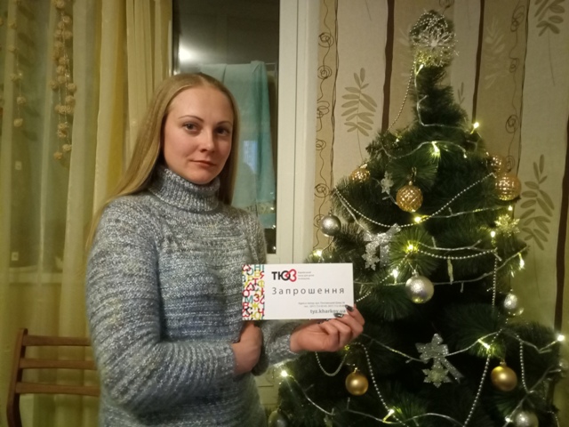 За свои труды и увлекательный рассказ Ирина получила пригласительный на спектакль в Харьковский академический театр музыкальной комедии, который вручили ее маме Ларисе возле елочки в “Майстерні карамелі”.