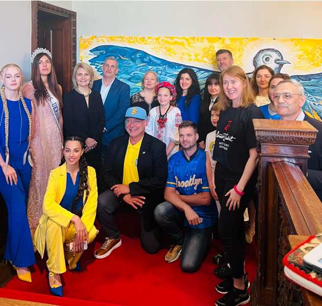 В найболючишій день для всієї України два прапори, Америки та Украйни, майоріли поряд на визначному для нашої країни заході в Нью-Йорку. Саме українці було довірено співати Гімн Америки та Гімн України при піднятті прапорів. А ще Заслужена артистка України Вікторія Вєннікова для присутніх заспівала чуттєві українські пісні – “Біля тополі” та, знану на весь світ, “Червону калину”!