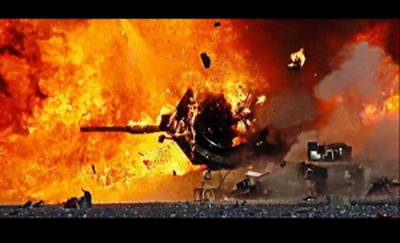 На кадрах, снятых с помощью дрона, видно уничтожение танков атриллерией и противотанковыми ракетами.