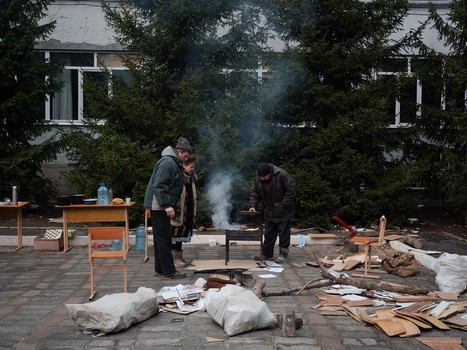 «33 человека уже больше месяца живут в подвале на земляном полу при температуре около 5 градусов. Еду готовят на костре во дворе, разожженном из школьных парт и стульев, снаряды рвутся над головами почти круглосуточно. Неделю нет света. Месяц нет газа, воды и отопления», – рассказал Евгений Каплин.