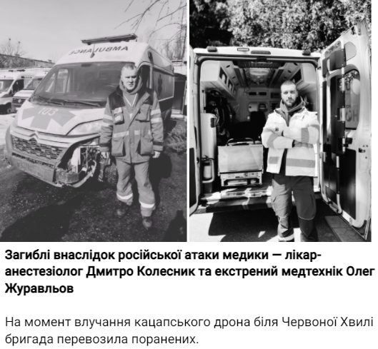 Напередодні, 15 березня, близько 05.00 поблизу села Червона Хвиля Куп’янського району військові рф завдали цілеспрямованого удару FPV-дроном по автівці екстреної медичної допомоги, що рухалася дорогою.